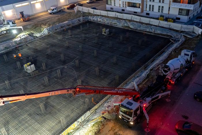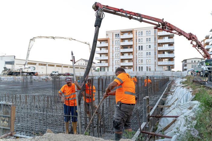 A fost turnat deja radierul pentru fiecare dintre cele 3 blocuri, urmand ca, in continuare, sa se desfasoare lucrarile de elevatie a cladirilor. Toate constructiile se vor finaliza deodata, intrucat echipele de muncitori lucreaza simultan la cele trei imobile.