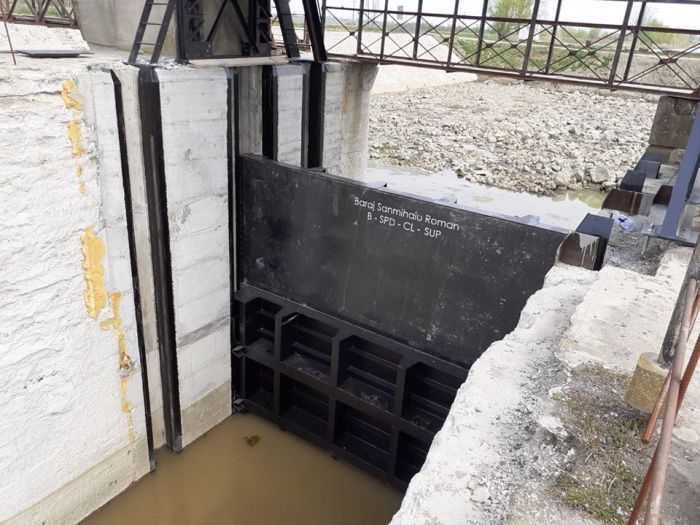 Astfel, potrivit Administratiei Bazinale de Apa Banat, “au fost facute probe de lansare in ghidaje a batardourilor metalice amonte si aval de stavila plana dubla Stoney, a fost plasata pe pozitie stavila plana dubla Stoney si a fost montat esafodajul de reazem al echipamentelor de manevra a stavilei plane duble Stoney. Pe santierul nodului hidrotehnic Sanmihaiu Roman se afla: stavila metalica cilindrica, stavila metalica de tip Stoney, stavila metalica plana dubla, batardourile aferente acestora, grinda de manevra a stavilei cilindrice, reductoarele, portile buscate ale ecluzei“.
