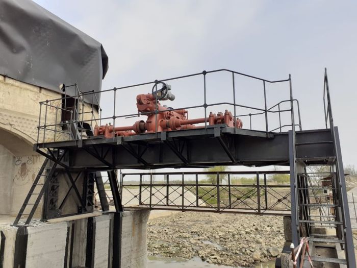 O echipa de muncitori a montat deja pentru probe de functionare cateva echipamente hidromecanice din cadrul barajului stavilar pentru verificarea parametrilor constructivi si functionali.
