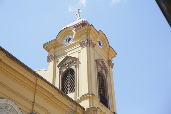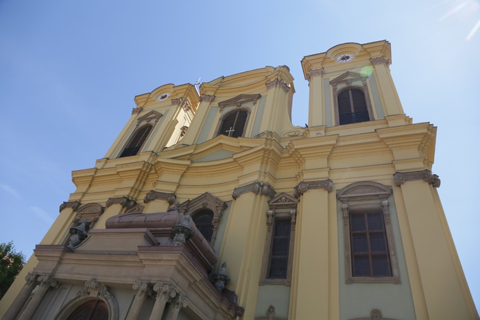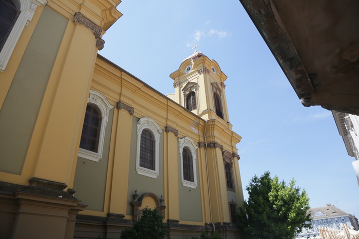 ”Cladirea a fost construita in stil baroc, planurile au fost facute la Viena si a fost finalizata in anul 1774. E un monument deosebit, construit in stilul este baroc. Acest stil era pe atunci stilul modern. Se poate spune ca e ultimul stil cu radacini crestine. Are la temelie un simbol al vietii crestine. Se spune ca sub pamant sunt mai multe caramizi decat deasupra. Ne bucura ca in ciuda mlastinilor stam pe pamant sigur. Acest edificiu este incaperea cea mai buna din punct de vedere al acusticii, aici s-au inregistrat diferite piese, inclusiv in epoca comunista. In fata altarului sunt doua statui care amintesc de Carol al VI-lea si de Maria Terezia, doua personalitati din familia Habsburgica, sub domnia carora s-a ridicat acest edificiu. Pentru noi, romano-catolicii, Catedrala e principala biserica, aici se sfintesc preotii care slujesc pe aria Episcopiei”, declara in 2017 episcopul romano-catolic de atunci ES Martin Roos.