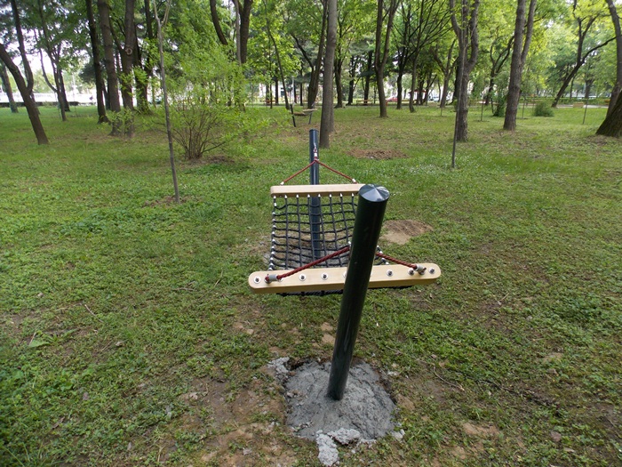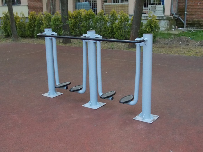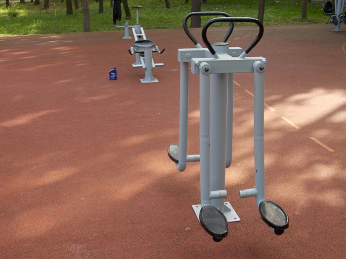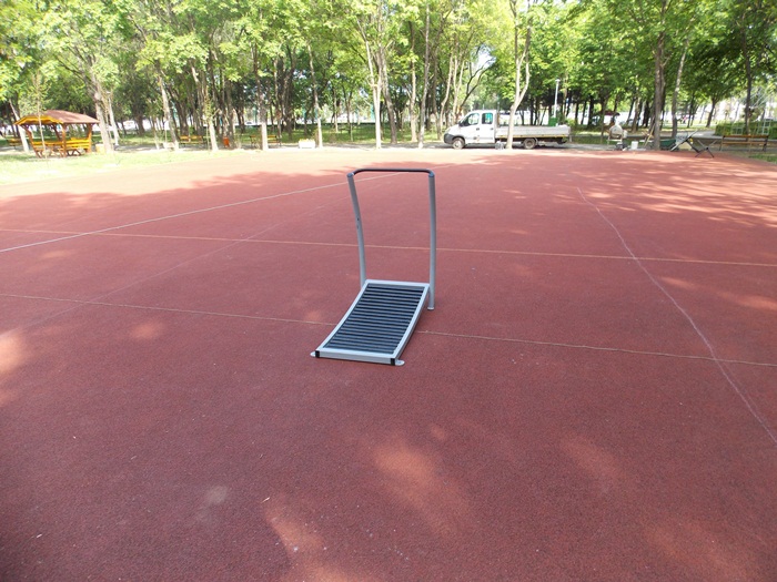 Pe langa hamace, au fost montate pe terenul de fotbal din tartan din parc au fost instalate si mult asteptatele aparate de fitness in aer liber, insa nici in acea zona nu sunt complete lucrarile.