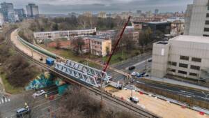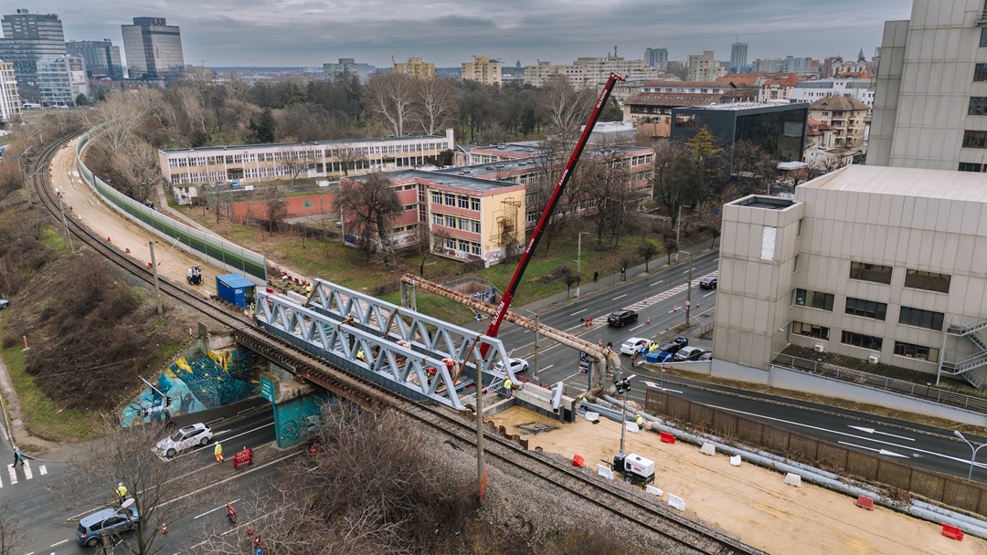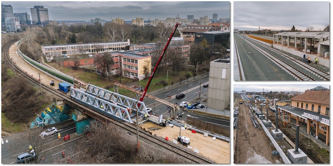TIMIȘOARA. A fost instalat tablierul la pasajul peste calea ferată de pe stradă Gheorghe Lazăr zilele trecute, iar în paralel muncitorii lucrează la peroane și pasarele în stații, dar și la viitoarea parcare supraterană de lângă Gara de Nord Timișoara.