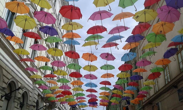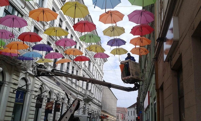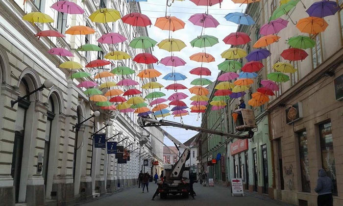 TIMISOARA. Anunt important pentru timisorenii care in anii trecuti nu au apucat sa admire sau sa-si faca fotografii sub acoperisul de umbrele colorate de pe strada Alba Iulia.