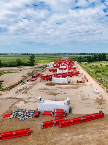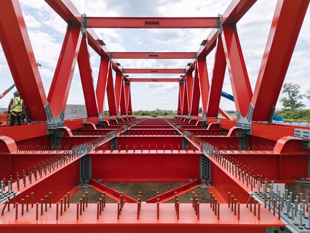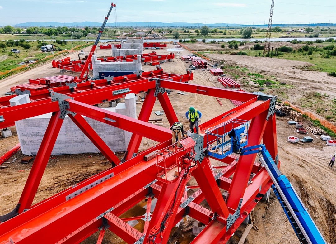 Astfel, în acest moment se montează grinzile cu zăbrele simple cu sistem triunghiular, fiind finalizate 2 din cele 9 care vor fi ansamblate. De asemenea, au loc lucrări de construire a pilelor 7 și 8 de pe marginea râului Mureș.