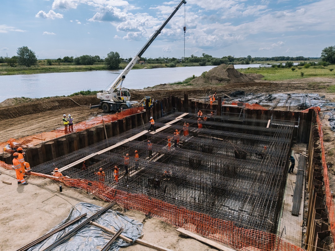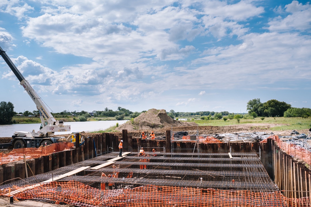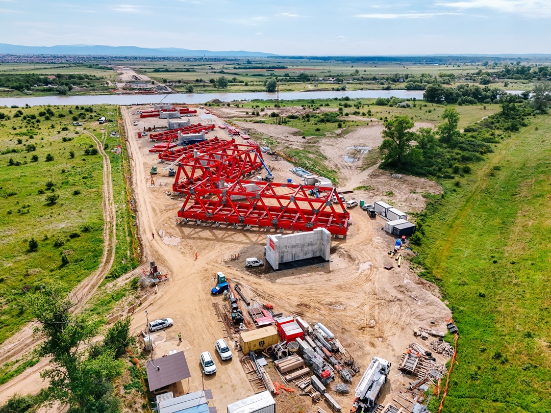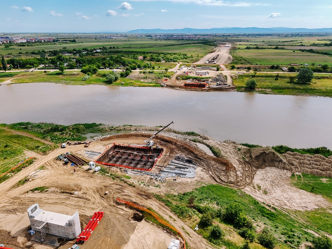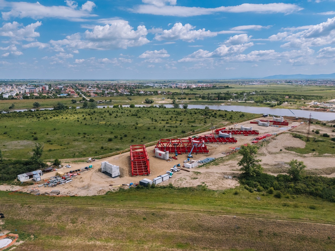 În cadrul modernizării liniilor dintre stațiile Ronaț Triaj și Arad, la km. 2+610 (proiectat) continuă lucrările pentru construirea noului pod peste Mureș.
