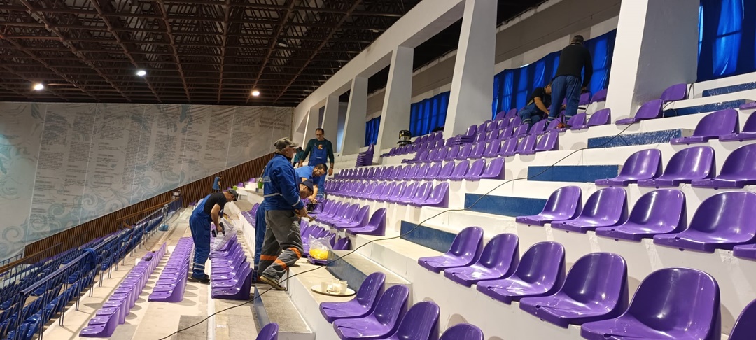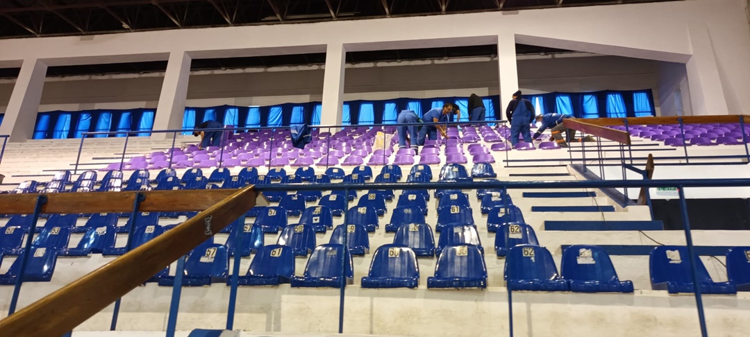 Inca de saptamana trecuta au fost amplasare primele scaune noi, iar acum au inceput interventiile in partea superioara a tribunei. Scaunele albastre au fost scoase, s-a facut curatenie si a fost revopsit betonul.