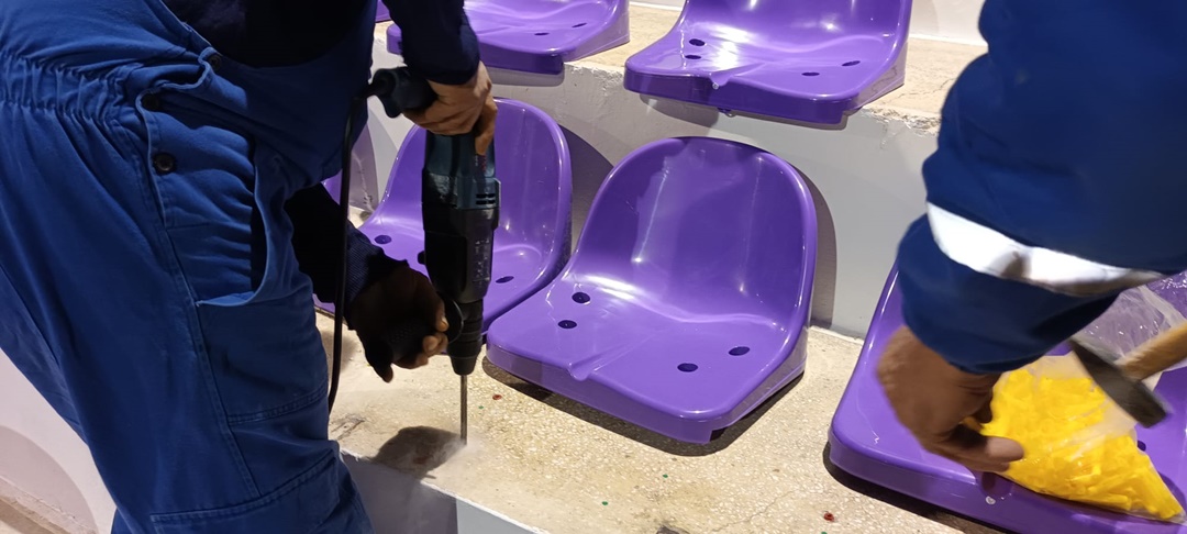 Operatiunile de inlocuire se fac din partea de sus spre mantinela, iar ultimele care vor fi instalate sunt scaunele din zona VIP, care a si fost refacuta.