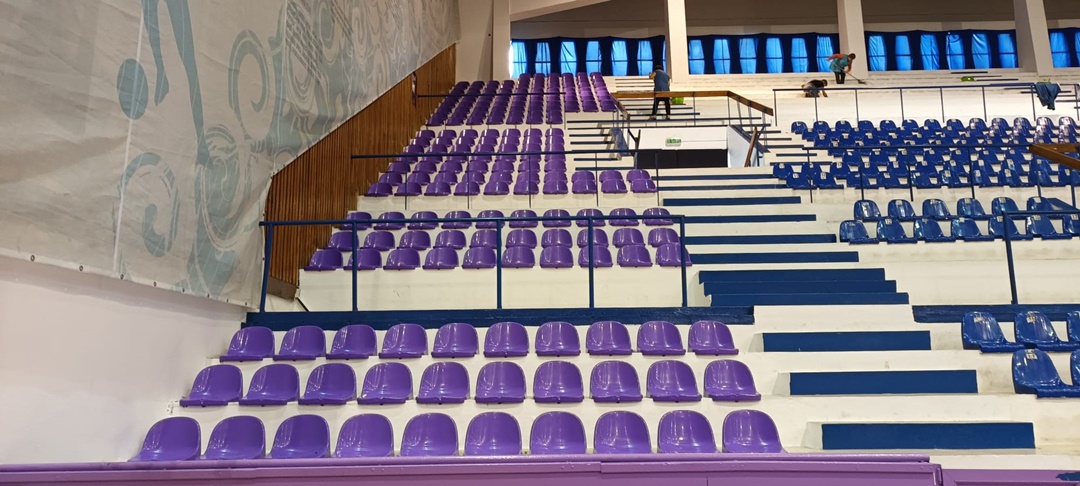 TIMISOARA. Lucrarile de modernizare ale salii ce poarta numele marelui antrenor de handbal Constantin Jude sunt in plina desfasurare. In acest zile sunt scoase din batrana Olimpia scaunele albastre si sunt montate cele noi, de culoare violet.