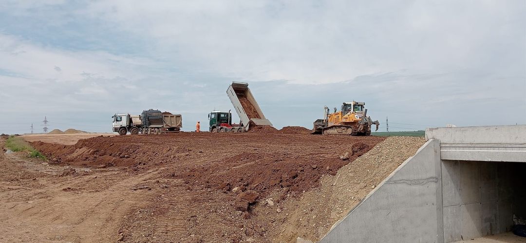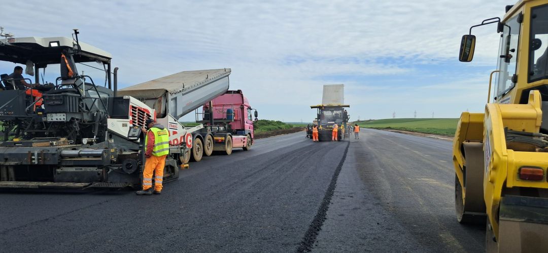 Pe unele segmente s-a așternut mixtură asfaltică (strat e legătură și strat de baza), iar pe altele au continuat umpluturile din balast, umpluturile din pământ și realizarea fundațiilor de balast și agregate naturale stabilizate cu liant hidraulic.