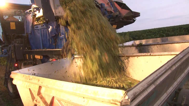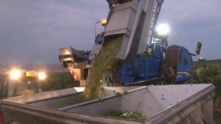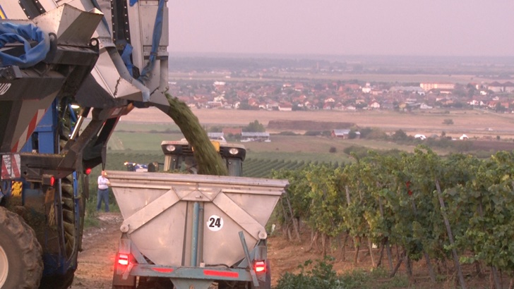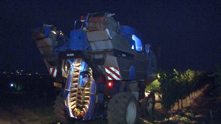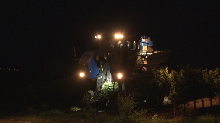 Si, pentru ca recoltarea sa mearga cat mai repede, strugurii sunt culesi doar in sistem mecanizat. Combinele care traverseaza rindurile de vita de vie reusesc, in doar cateva ore, sa culeaga mai multi struguri decat o faceau, in urma cu ani, cateva sute de oameni care lucrau din zori si pana pe inserat.