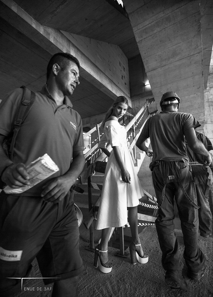 Santierul cladirii UBC 2 a reprezentat o provocare aparte pentru fotograf si fotomodele, insa rezultatul final a fost peste masura asteptarilor. Perimetrul in care se desfasoara lucrarile de constructie a primului imobil office din ansamblul Openville s-a dovedit a fi un cadru perfect pentru a pune in valoare detaliile glamour ale colectiei Tenue de Saf.