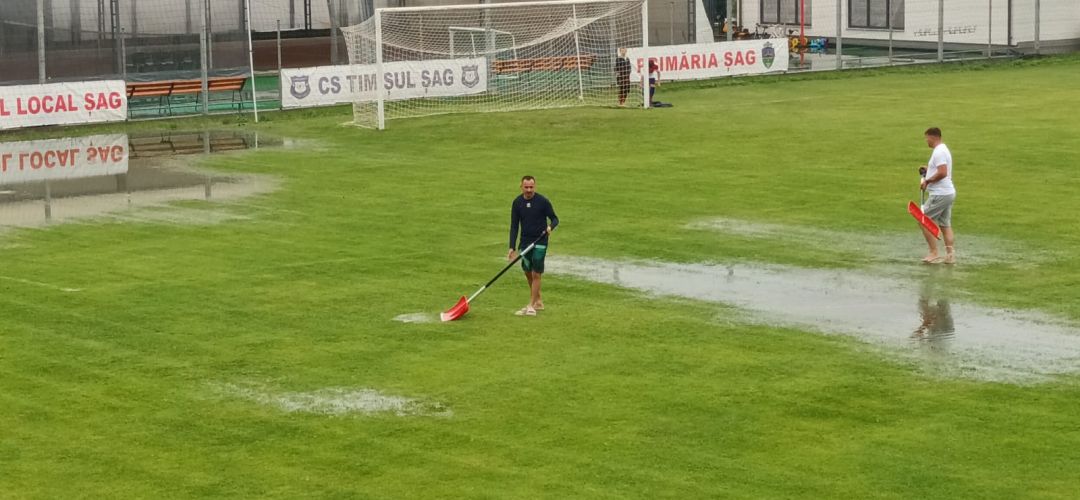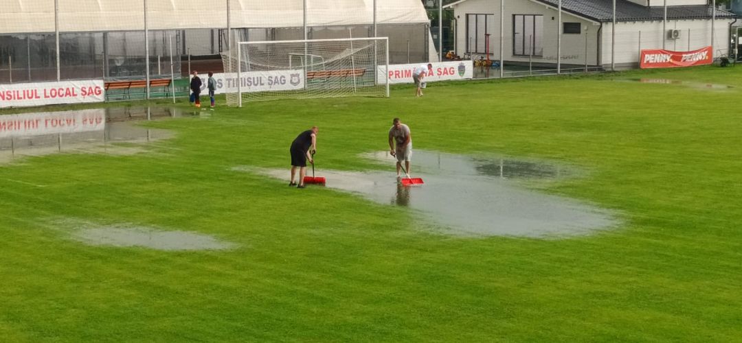 TIMIS. Ploaia torentiala care s-a abatut peste Sag a intarziat senifinala din Cupa Romaniei, pe care echipa locala Timisul trebuie sa o joace impotriva lui CSM Lugoj.