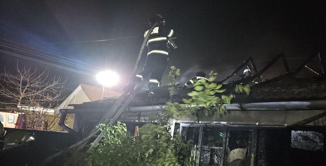 Incendiu puternic, miercuri seara, la o casa din localitatea aradeana Siria.