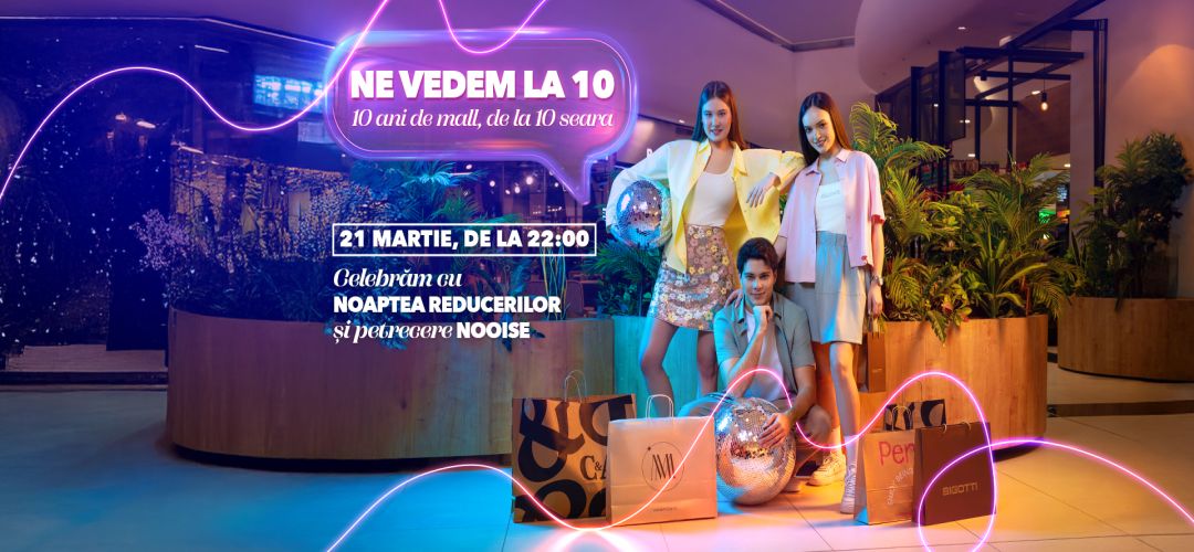 Shopping City Timișoara marchează 10 ani de la deschidere prin campania aniversară „Ne vedem la 10”. Pe 21 martie, începând cu ora 22:00, vizitatorii sunt invitați la o experiență nocturnă de shopping, cu reduceri speciale, surprize aniversare și o petrecere explozivă marca NOOISE, cu DJ Alex Hill și DJ Deny.
