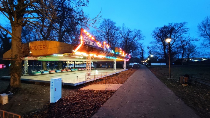 Vineri seara s-au facut si ultimele teste la iluminatul festiv, la instalatiile de joaca si la scena pe care in urmatoarele saptamani vor avea loc o multime de spectacole.