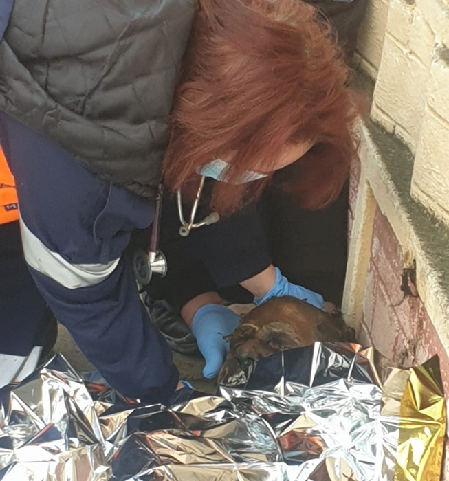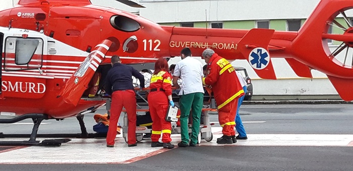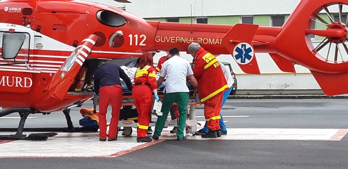Rudele l-au descoperit la timp au stins flacarile si au sunat la 112, iar la fata locului au ajuns un echipaj al pompierilor si o ambulanta. Cand salvatorii au vazut in ce stare e barbatul, au cerut interventia elicopterului SMURD.