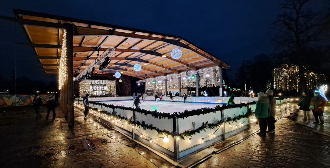 Pe acelasi drum se ajunge si la patinoarul amenajat in apropierea scenei, unde se desfasoara spectacolele si concertele acestei editii de la Parcul Craciunului.