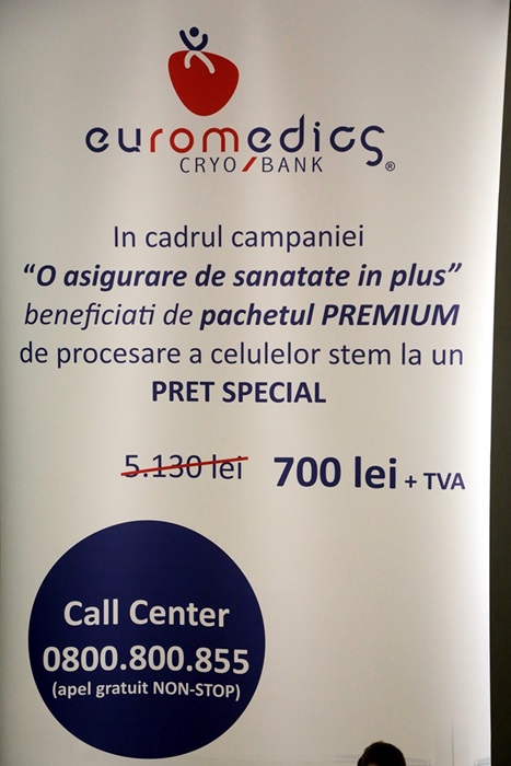 Astfel, pachetul Premium este la un pret special, de doar 700 de lei. Iar taxa de stocare in conditii de criogenare a celulelor este de 85 de euro pe an. La toate aceste preturi se adauga si TVA.