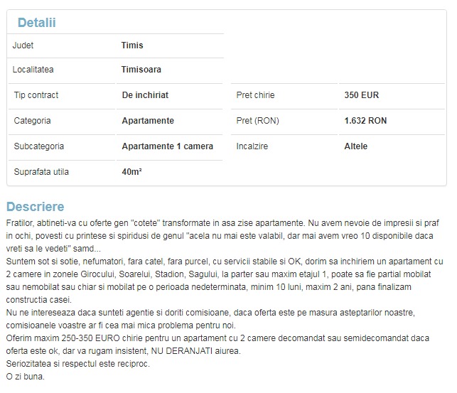 Din pacate, astfel de intamplari au devenit criterii de departajare, astfel ca unii proprietari fac selectia inca de cand posteaza anuntul. Sunt insa si situatii mai… deosebite.