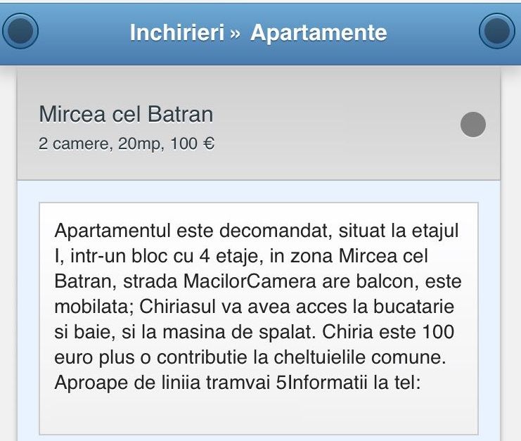 ‘Nu mai accept studenti. Am avut chiriasi studenti care nu si-au platit intretinerea timp de un an. Eu nu stau in Timisoara, iar banii de chirie i-au pus pe card, asa ca nu am stiut pana nu m-a sunat administratorul de la bloc. Le-am spus ca vin la Timisoara sa verific si au plecat inainte sa ajung. Au luat si cateva cutii cu parchet laminat cu care urma sa renovez apartamentul‘, ne-a spus Maria, proprietara unui apartament cu 3 camere, din zona Complexului Studentesc din Timisoara.