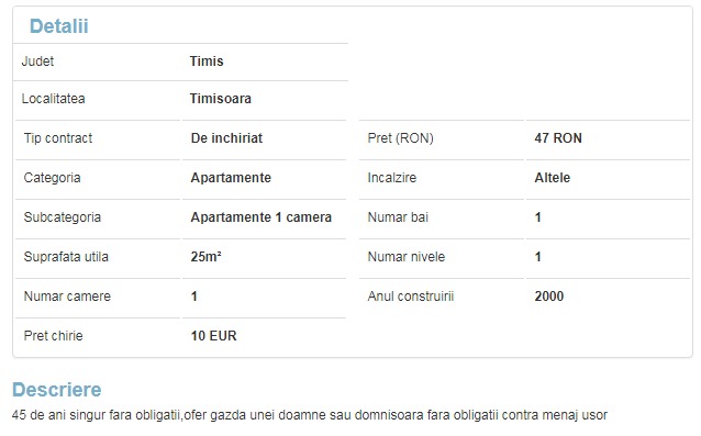 Fie ca apeleaza la serviciile unei agentii imobiliare sau cauta pe cont propriu intre sutele de anunturi ale proprietarilor, chriasii Timisoarei afla rapid ca unele lucruri nu sunt asa cum par. Pe internet exista o multime de anunturi false, ale unor agentii imobiliare, asta in conditiile in care oferta de chirii din Timisoara este, de cele mai multe ori, slaba calitativ si foarte scumpa.
