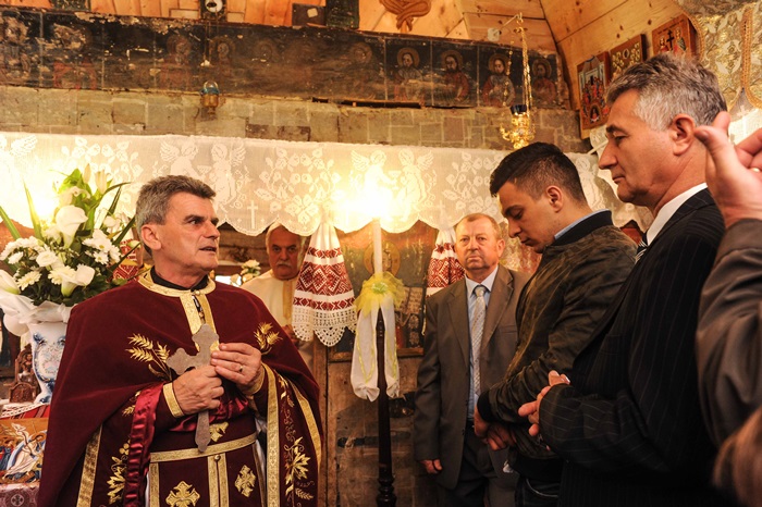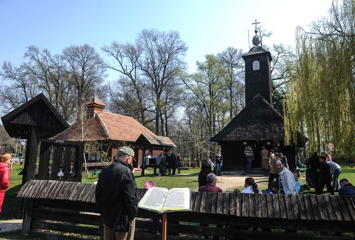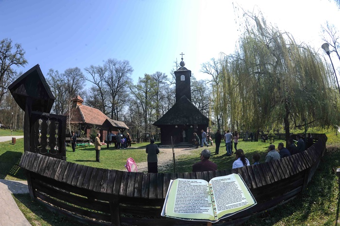 Dan Radosav, directorul Muzeului Satului Banatean, a oficiat slujba de Inviere, in fata zecilor de timisoreni care au venit sa ia Lumina de la biserica de lemn de la Topla. De asemenea, si astazi, de la primele ore ale diminetii, imbracat in haine preotesti, Radosav a tinut slujba de Paste.