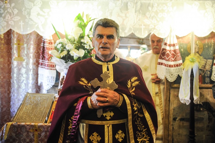 TIMISOARA. Dan Radosav, directorul Muzeului Satului Banatean, le-a facut o surpriza timisorenilor care au trecut aseara, la slujba de Inviere, dar si astazi, la slujba de Paste, pragul bisericii de la Topla, aflata in incinta Muzeului Banatean. Credinciosii care au venit sa se roage l-au putut admira intr-o postura mai putin cunoscuta, in cea de preot.