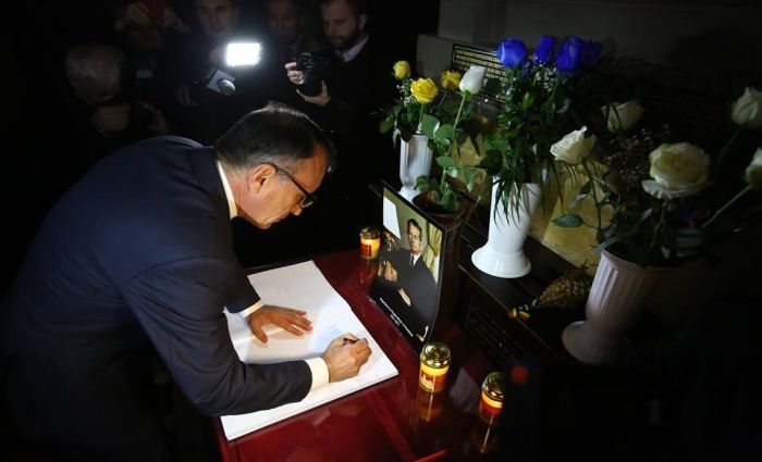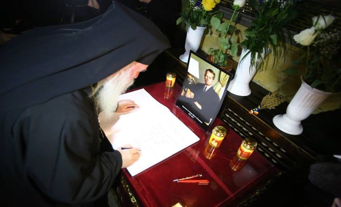 Imediat dupa slujba, in cartea de condoleante deschisa la Catedrala au semnat, pe rand, mitropolitul Ioan, apoi vicepremierul Paul Stanescu si presedintele Consiliului Judetean Timis, Calin Dobra.