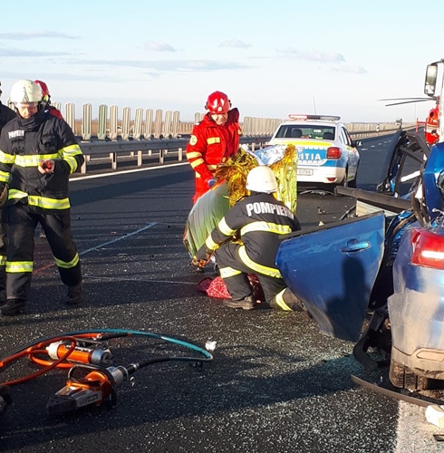 “In aceasta dimineata, pe autostrada A1 Deva-Nadlac, la aproximativ 7 km de iesirea din tara, in proximitatea PTF Nadlac II, a avut loc un eveniment rutier, in circumstante ce urmeaza a fi stabilite din cercetari. Evenimentul a avut loc in zona de stationare a automarfarelor care asteapta controlul la frontiera. Un autoturism inmatriculat in Ucraina, in care se afla doar conducatorul auto, a intrat in coliziune cu un automarfar. La fata locului s-a deplasat si elicopterul SMURD. Din nefericire, a fost constatat decesul conducatorului auto, un barbat. Identitatea acestuia urmeaza a fi stabilita, de indata ce autoturismul va fi indepartat de sub automarfar. Circulatia a fost blocata aproximativ 15 minute“, transmit reprezentantii IPJ Arad.