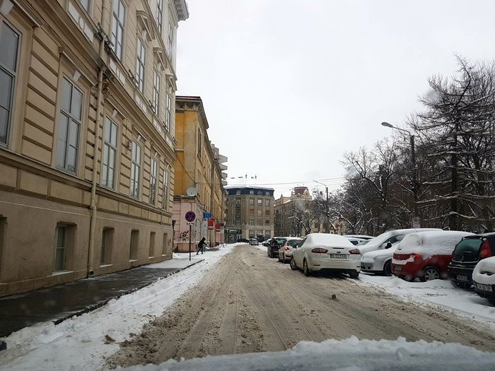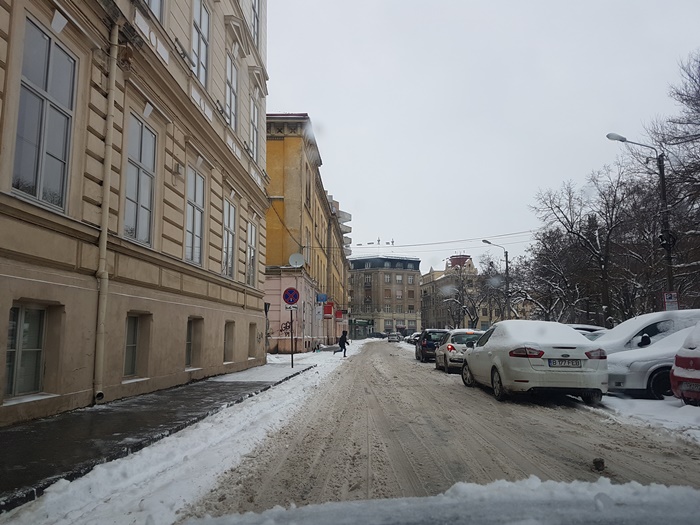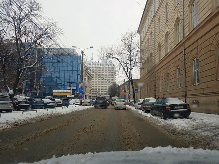 – Circulati cu o viteza care sa nu depaşeasca 30 km/h, in localitati, sau 50 km/h in afara lor cand partea carosabila este acoperita cu polei, gheata, zapada batatorita, mazga sau piatra cubica umeda.