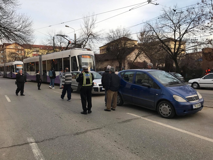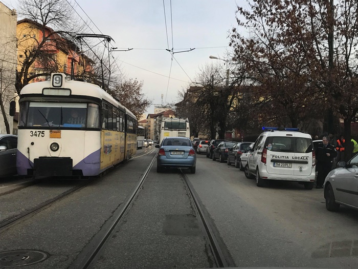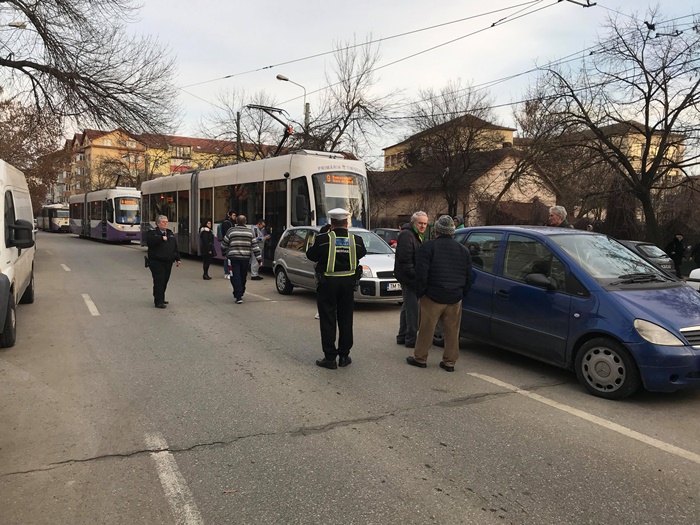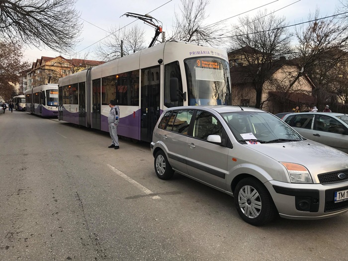 TIMISOARA. Blocaj, nervi si multe injuraturi slobozite de calatorii din 3 tramvaie care au fost nevoiti sa coboare din vagoane si sa-si continue drumul pe jos, vineri dupa-amiaza, pe un mare bulevard din Timisoara.