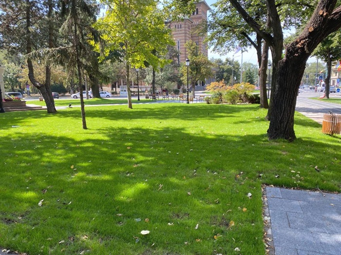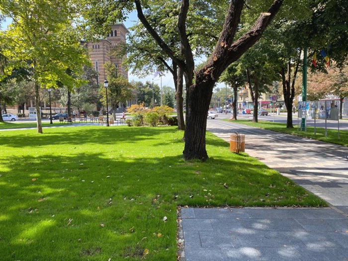 TIMISOARA. Un spatiu lasat in paragina multa vreme si pe care muzicienii Filarmonicii Banatul isi lasau masinile a fost transformat complet de muncitorii primariei, la Timisoara.