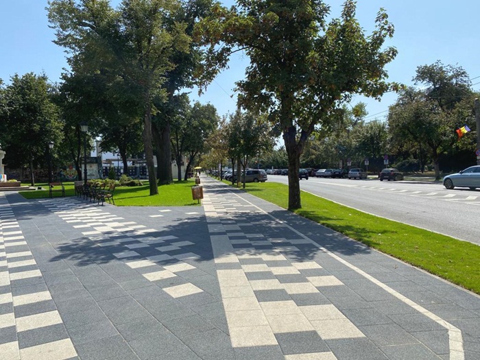 De asemenea, pavajul a fost inlocuit cu dalele albe si negre, amplasate sub forma de mozaic, asa cum s-a intamplat pe trotuarele din zona centrala.