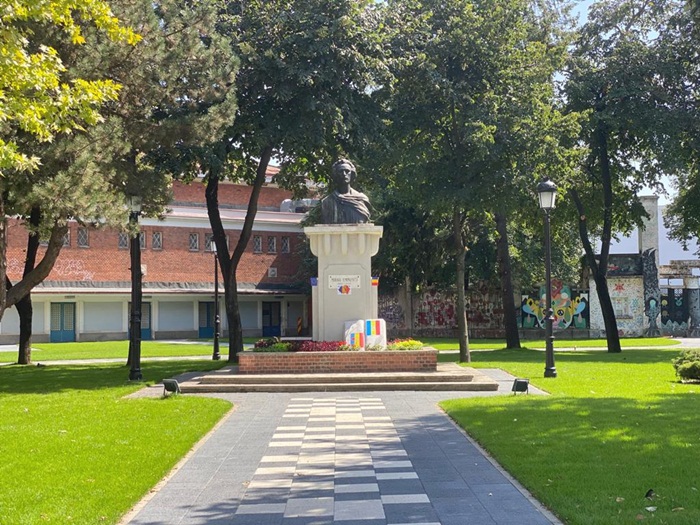 Statuia poetului national Mihai Eminescu a fost si ea curatata si e iluminata arhitectural, de ziua Limbii Romane.