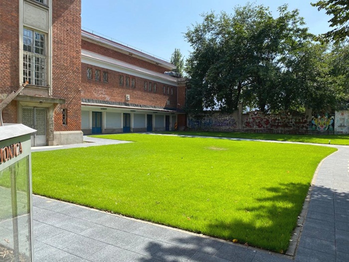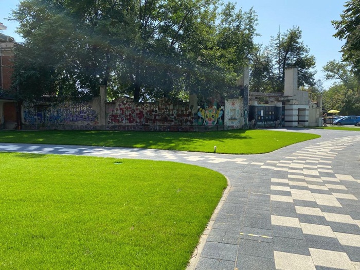 A fost introdusa o retea de irigatie, au fost amplasate noi corpuri de iluminat, iar iarba care crestea odata in zona a fost inlocuita cu gazon.