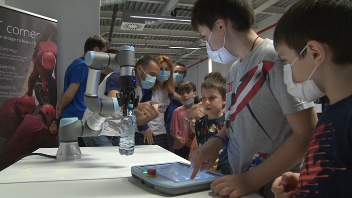 La sediul Nokia, vizitatorii au fost asteptati cu un traseu inedit care a spus povestea telefonului, de la cel care facea apelul cu ajutorul unei centraliste si pana la androidul zilelor noastre. Evolutia tehnologiei si cea a comunicarii au fost ilustrate cu piese de altadata, calculatoare vechi, componente de altadata, dar si roboti.