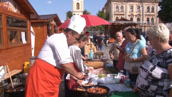 In acorduri de muzica populara, gratarele au sfarait, iar la ceaunele cu gulas s-au format cozi imense. Totul, pentru a marca deschiderea oficiala a Targului de produse trafitionale, organizat in Piata Traian.