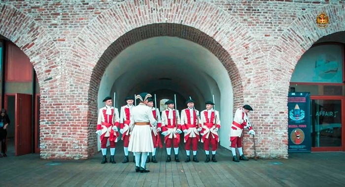 Tineri pompieri au imbracat uniforma militara de pe vremea printului de Savoya si au defilat prin Bastionul Theresia.