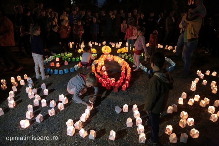 TIMISOARA. S-a stins lumina in Parcul Rozelor din Timisoara, iar zeci de timisoreni au mers sambata seara sa aprinda deja traditionalele gulgute, cum se numesc lampioanele cercetasilor. Peste 5000 la numar.