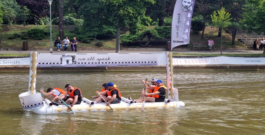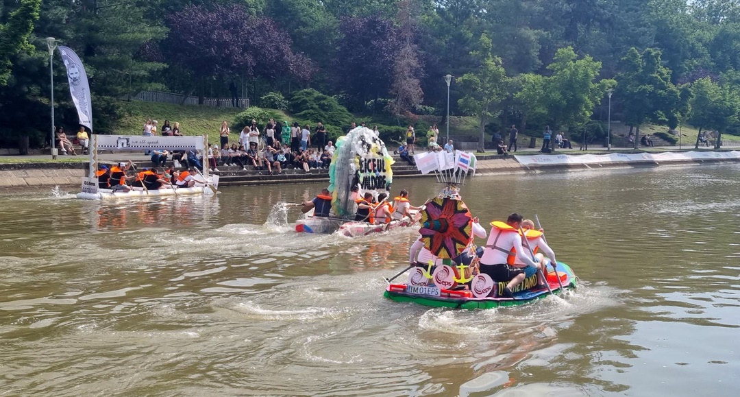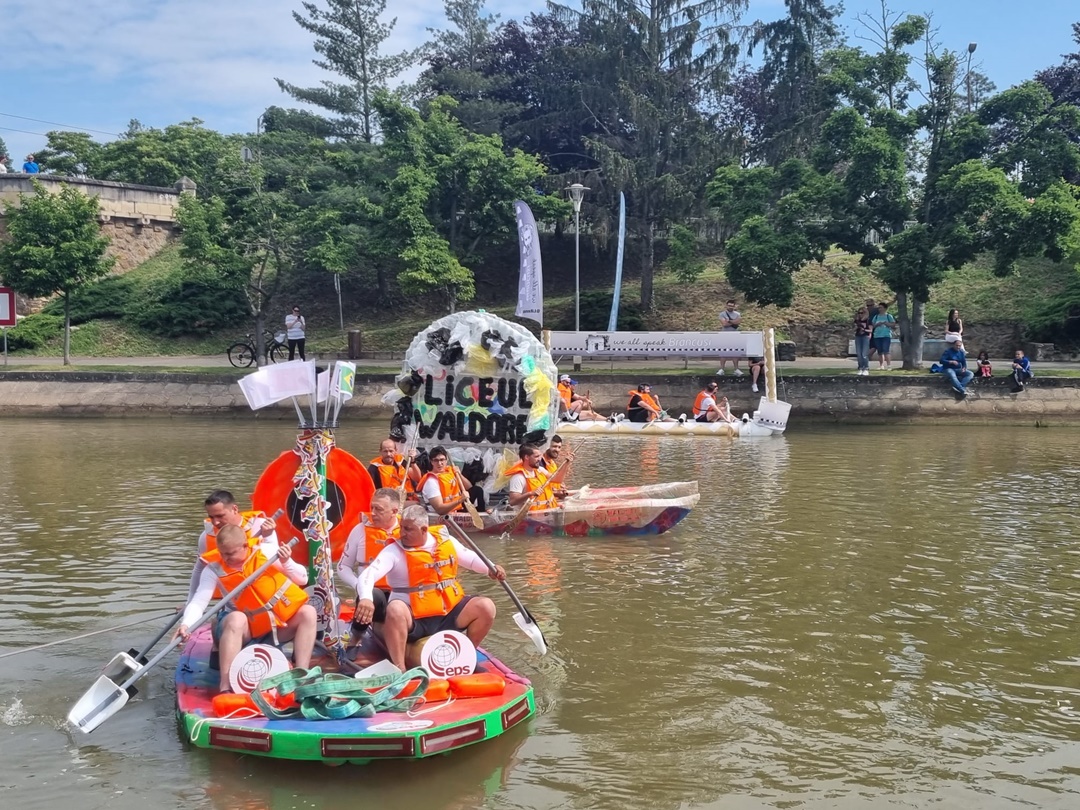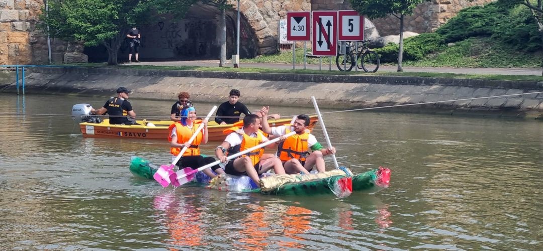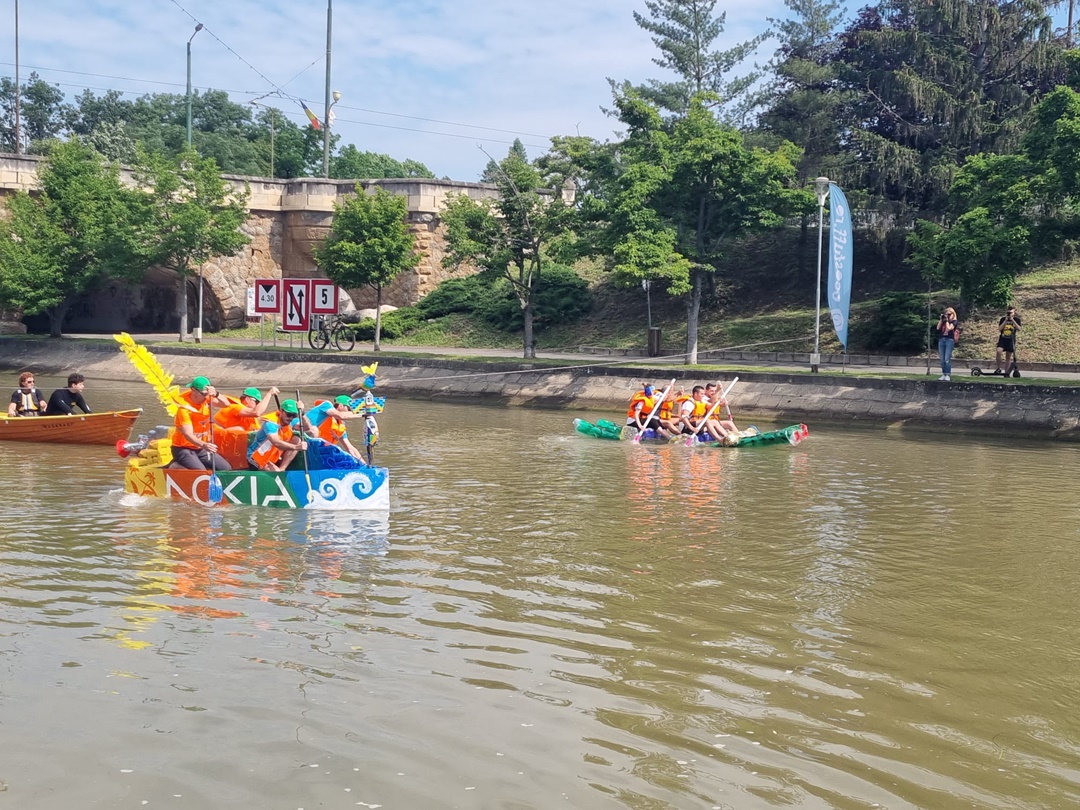 TIMISOARA. Distractie pe Bega, sambata, la Timisoara, la editia 2023 a „Make it!Race it! Recycle it!” cursa trasnita a ambarcatiunilor din materiale reciclabile.