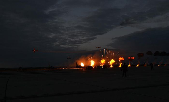 Spectacolul a fost condimentat si de prezenta motociclistilor de la Timisoara Bikers si chiar cu decolarea si aterizarea aeronavelor comerciale, iar la final, cu un concert de muzica rock.