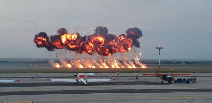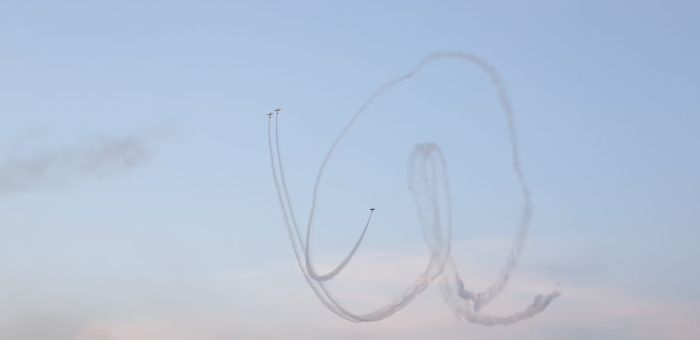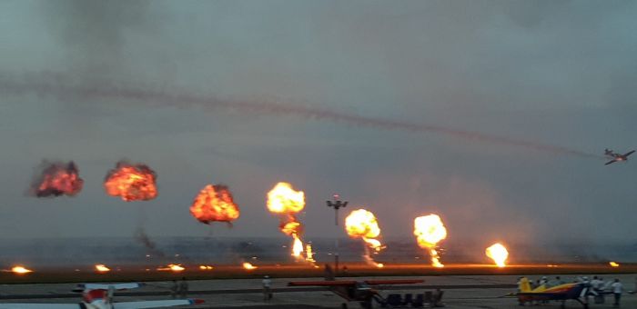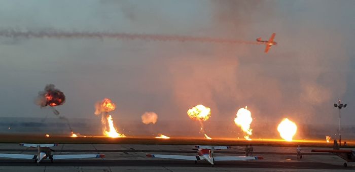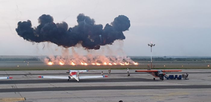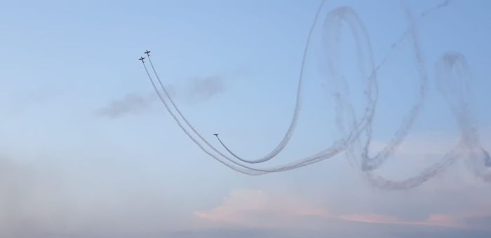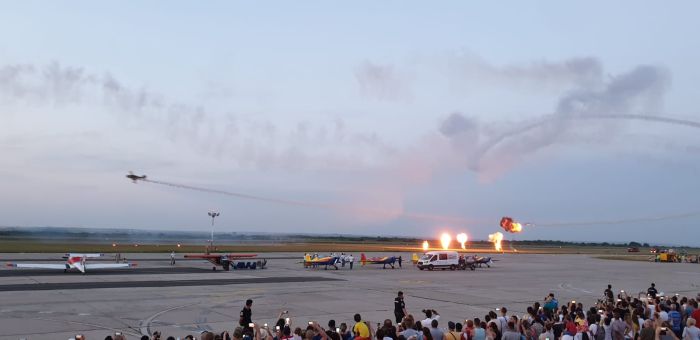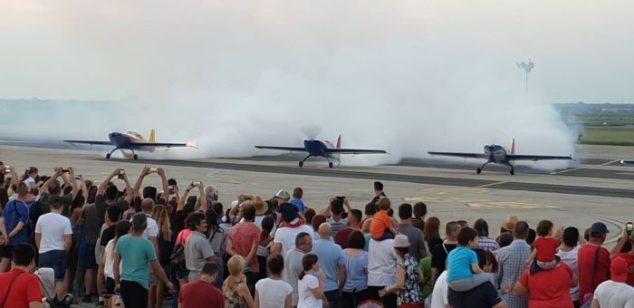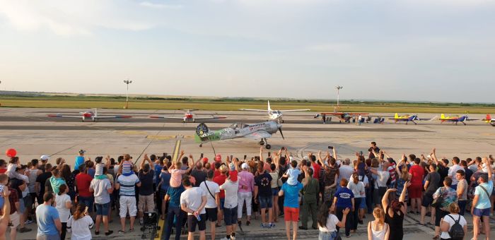 Spectatorii adunati la Aeroport au urmarit cu sufletut la gura evolutiile pilotilor din cadrul Fortelor Aeriene Romane cu escadrila de elicoptere si cu o formațiune de aeronave Mig 21 Lancer, apoi Aeroclubul Romaniei care a evoluat cu formația Hawks of Romania – Soimii Romaniei, condusa de George Rotaru.