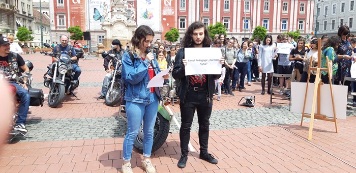 Elevi de la liceele din oras sau din comunele din apropierea Timisoarei, motociclisti, asociatii ale seniorilor sau reprezentanti ai Penitenciarului Timisoara, s-au adunat in Piata Libertatii pentru ce-a de-a patra editie a evenimentului Concentrica.