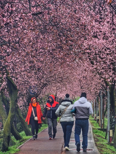În ciuda ploii care s-a abătut peste oraș, priveliștea este una de poveste, iar unii dintre timișoreni s-au încumetat să iasă la plimbare pe sub copacii înfloriți și să își facă fotografii.