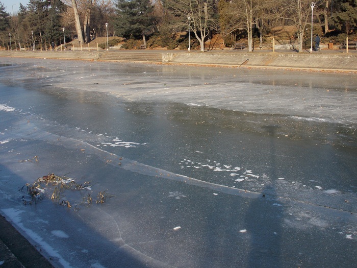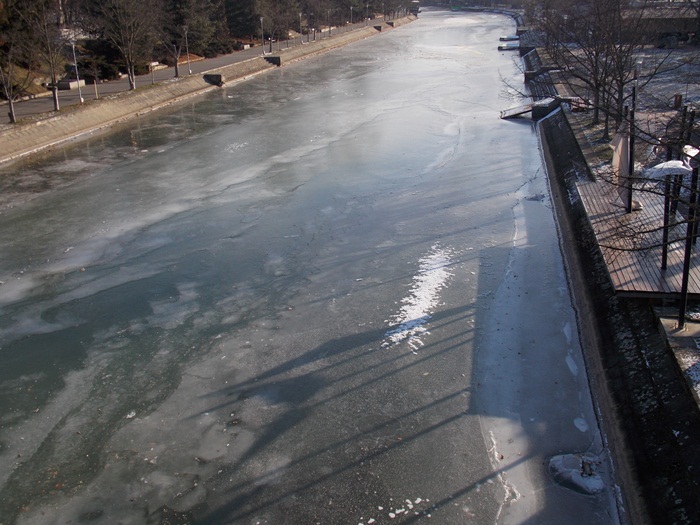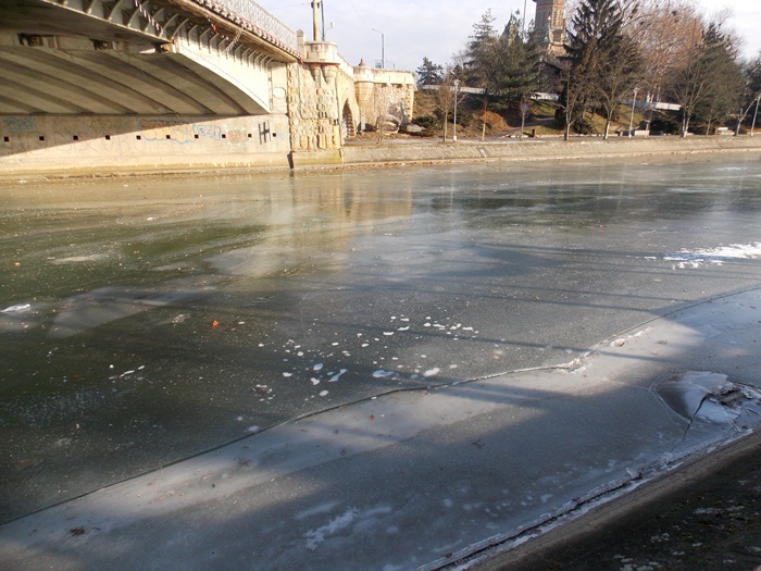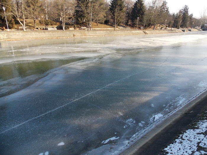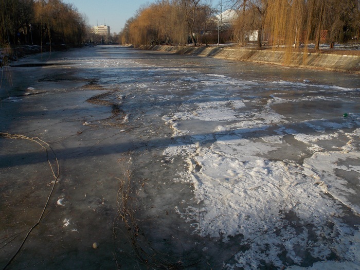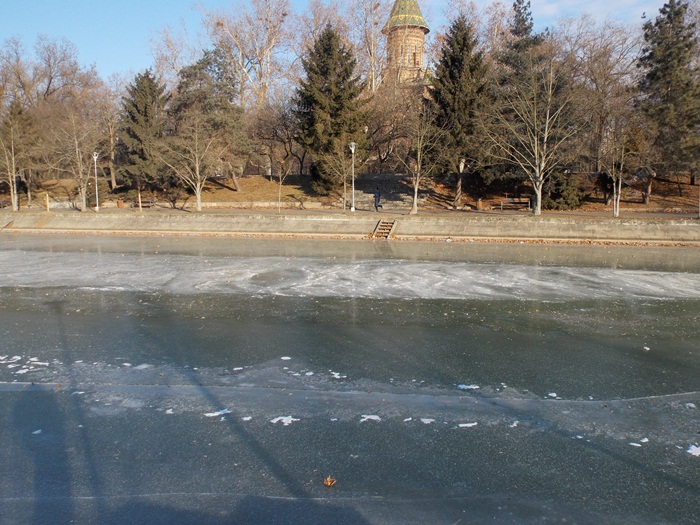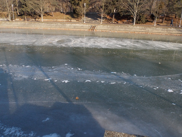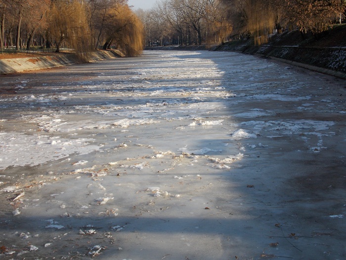 TIMISOARA. Gerul naprasnic care a inghetat Banatul la minus 20 de grade a transformat raul Bega intr-un ‘pod’ spectaculos ce uneste Timisoara.