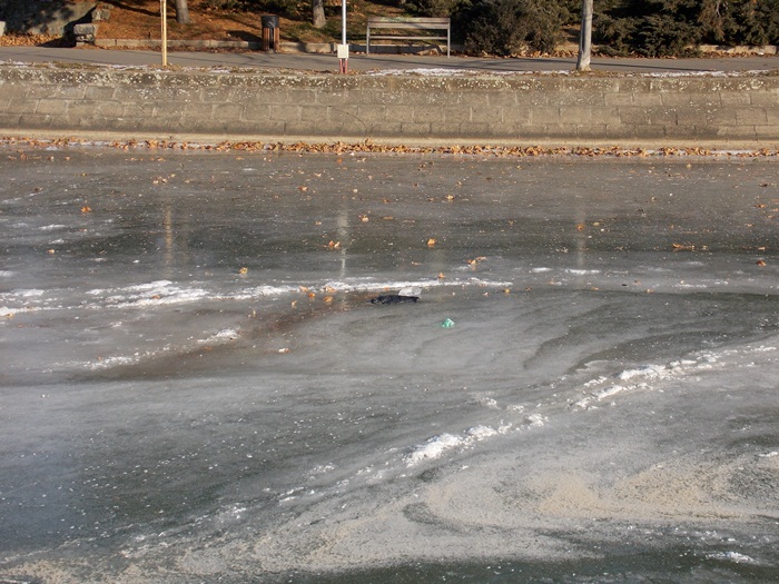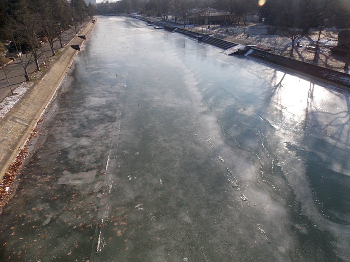 Din pacate, inghetul de pe Bega nu a oferit doar un peisaj atragator de ianuarie, ci a adus la suprafata si gunoaie aruncate in apele raului de timisoreni si manunchiuri de crengi prabusite in canal de vantul puternic ce a batut in ultimele zile.
