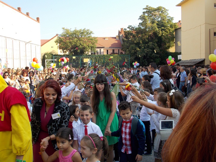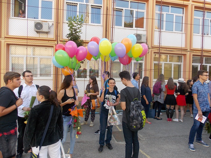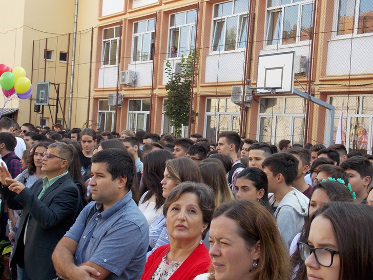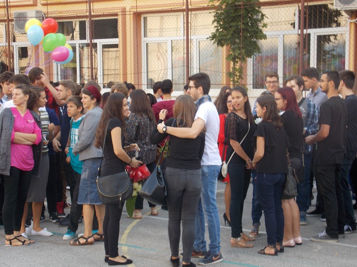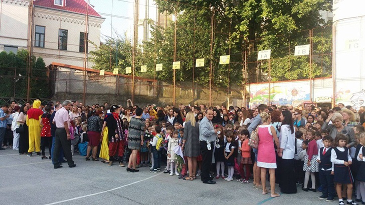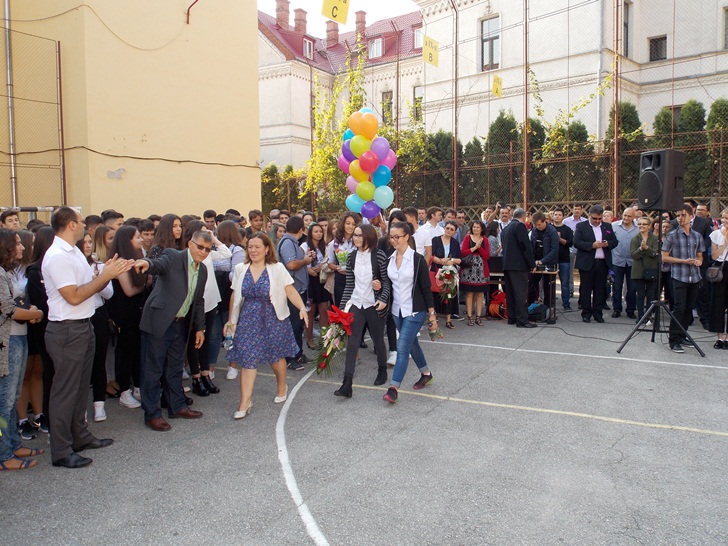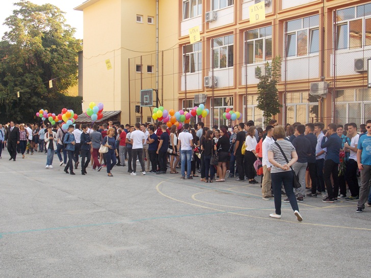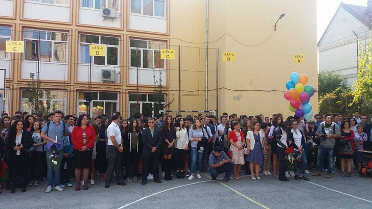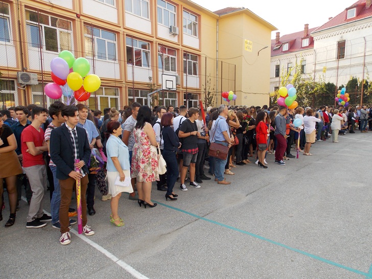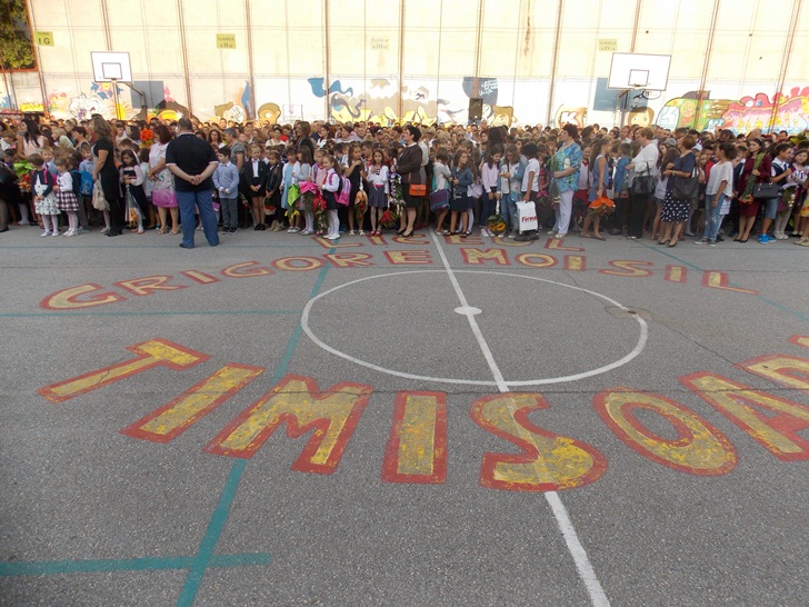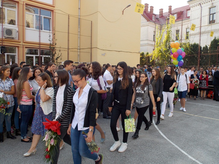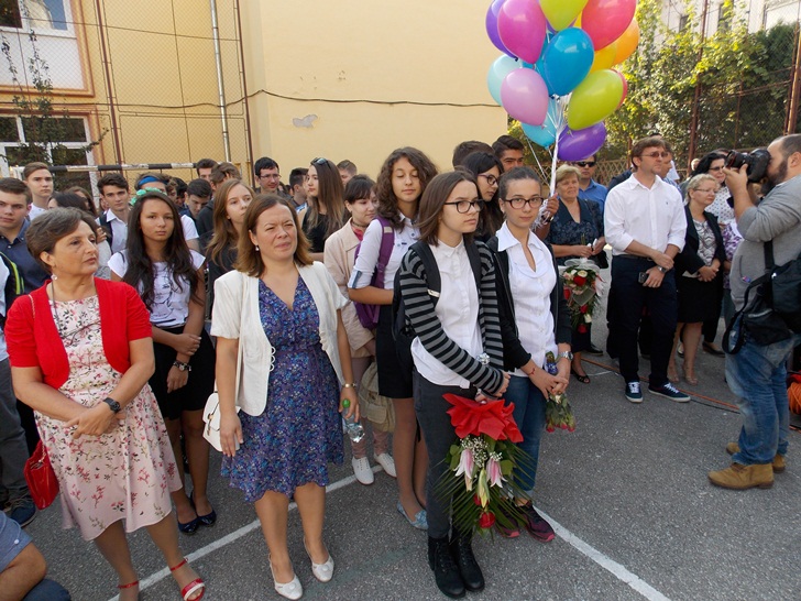 TIMISOARA. Emotii si flori multe in prima zi de scoala la Liceul Grigore Moisil din Timisoara. Curtea scolii s-a umplut de ghiozdane colorate, baloane, flori si chiote.
