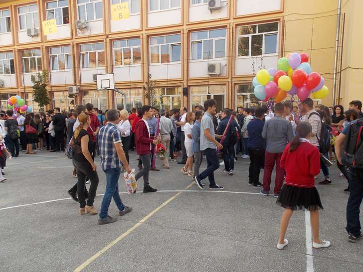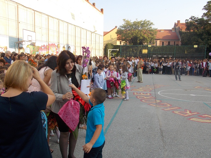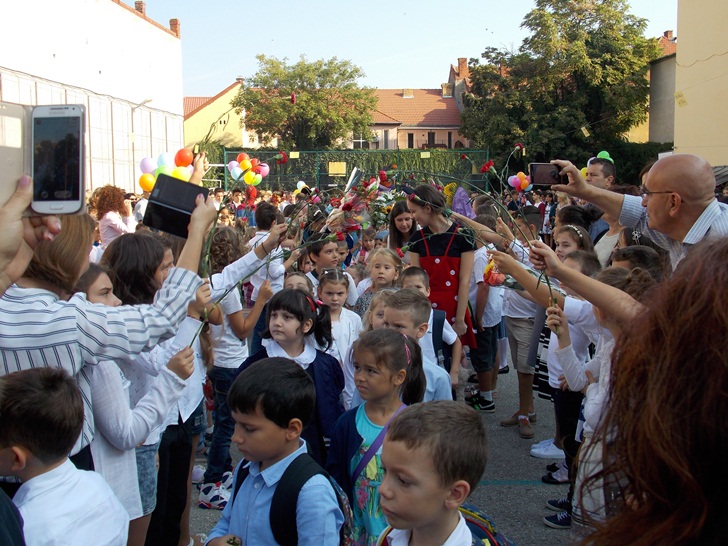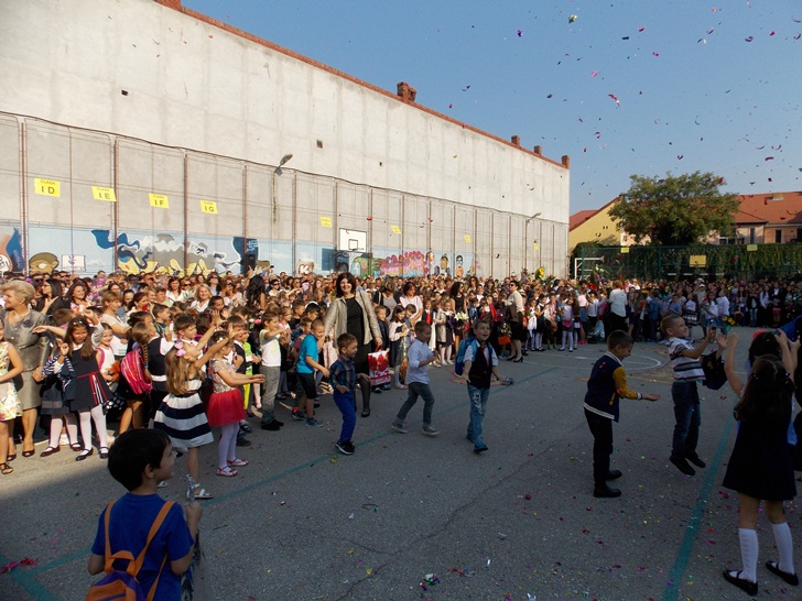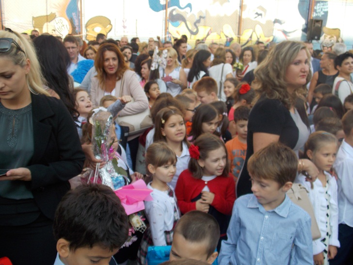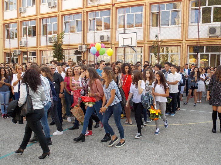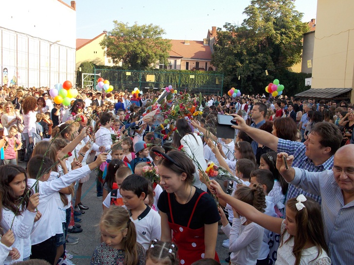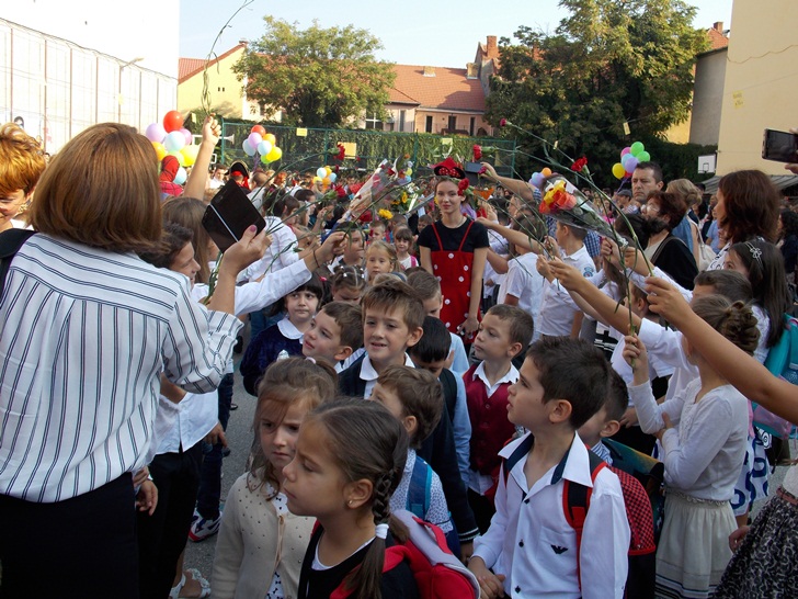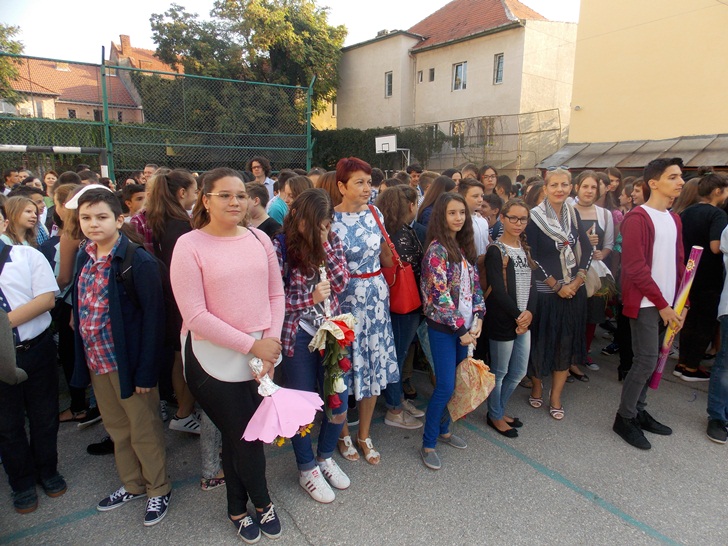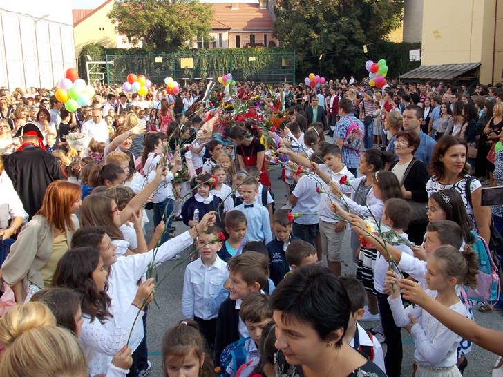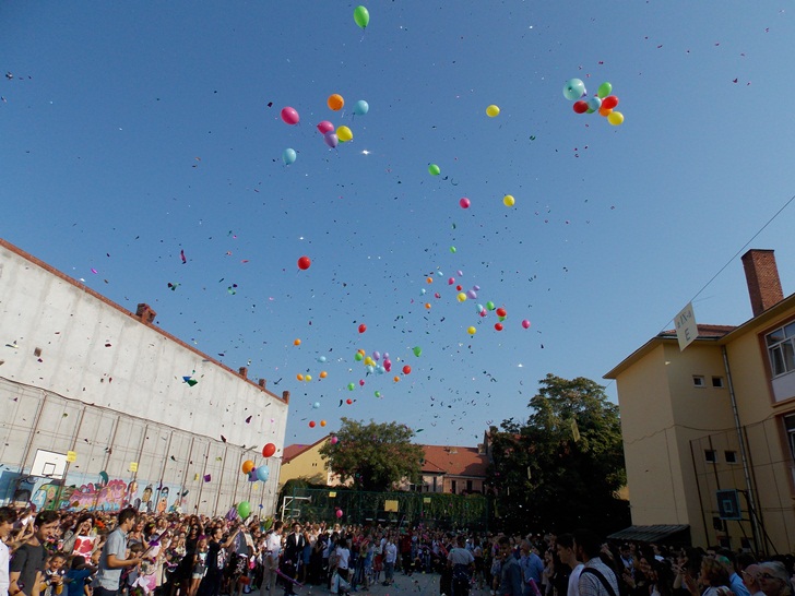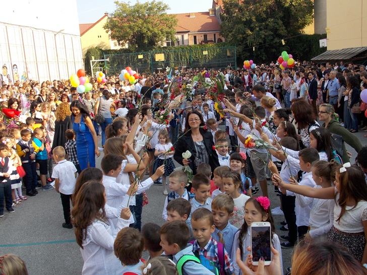 TIMISOARA. Emotii si flori multe in prima zi de scoala la Liceul Grigore Moisil din Timisoara. Curtea scolii s-a umplut de ghiozdane colorate, baloane, flori si chiote.