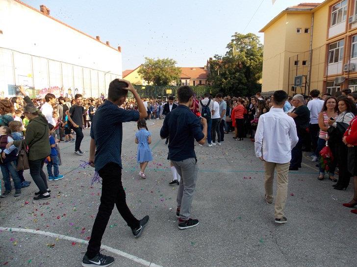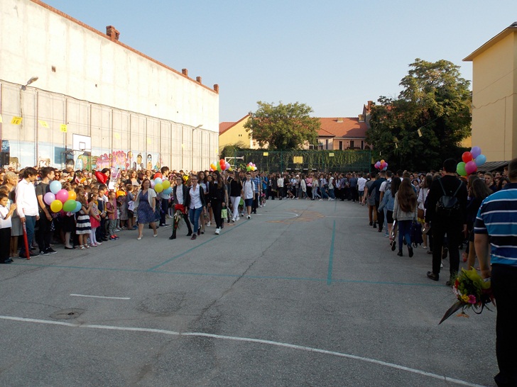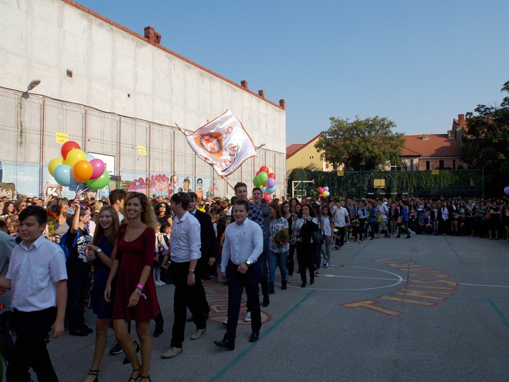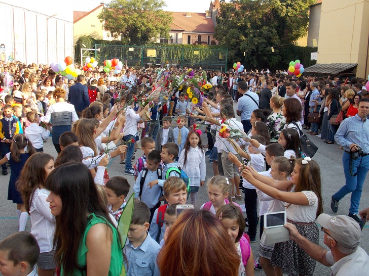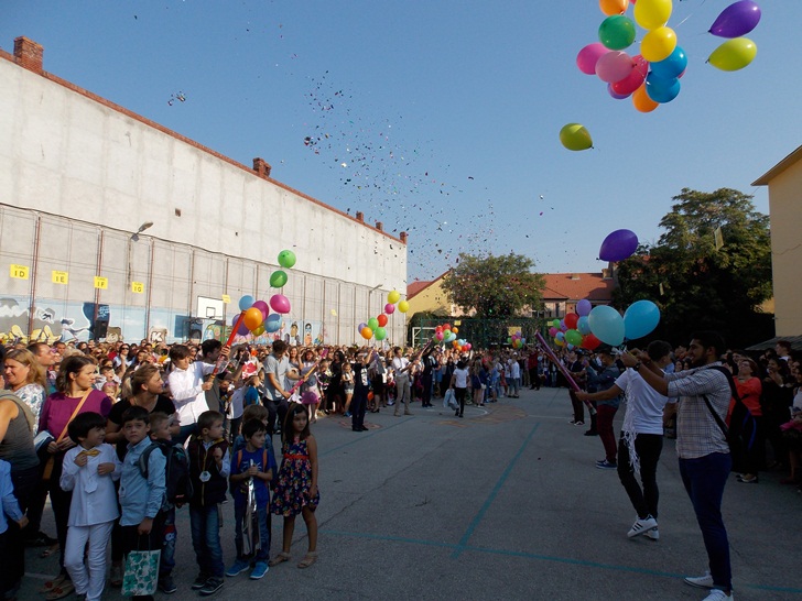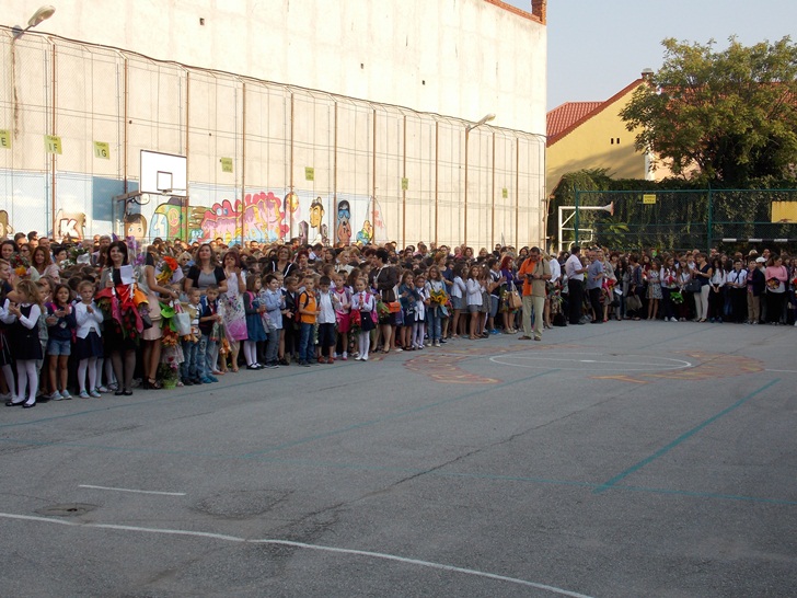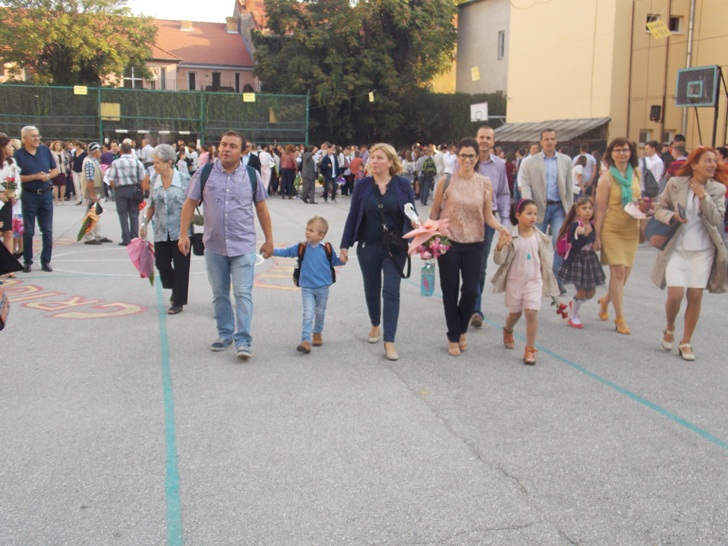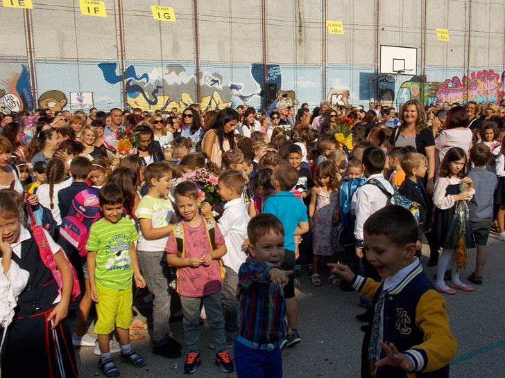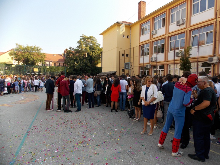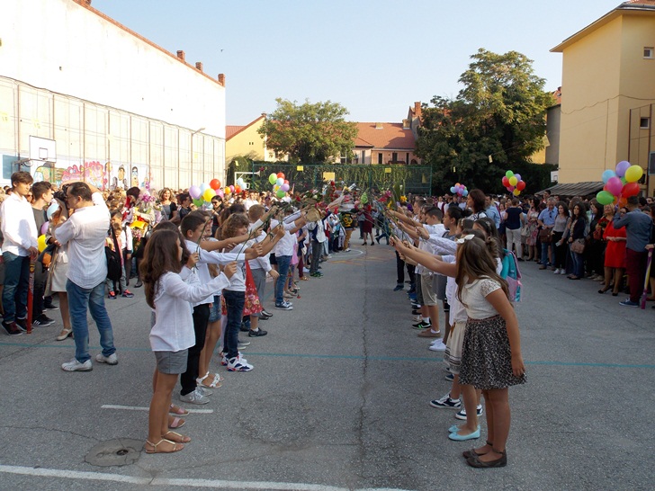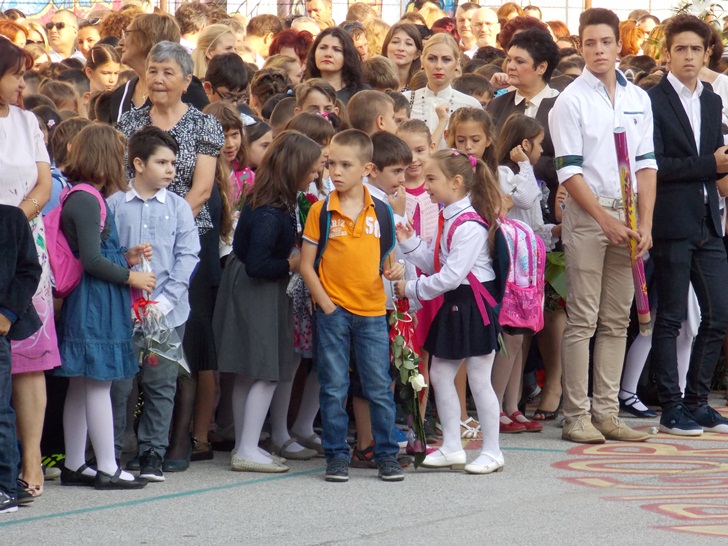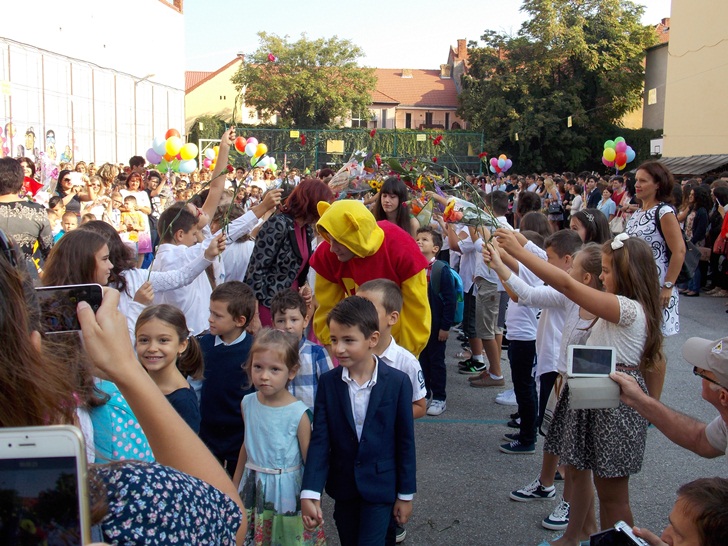 TIMISOARA. Emotii si flori multe in prima zi de scoala la Liceul Grigore Moisil din Timisoara. Curtea scolii s-a umplut de ghiozdane colorate, baloane, flori si chiote.