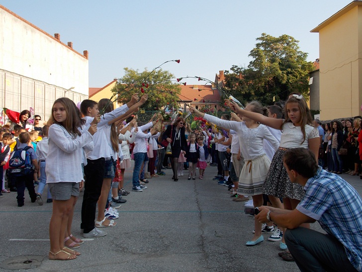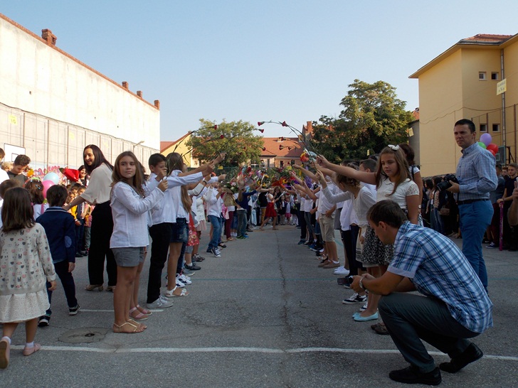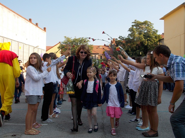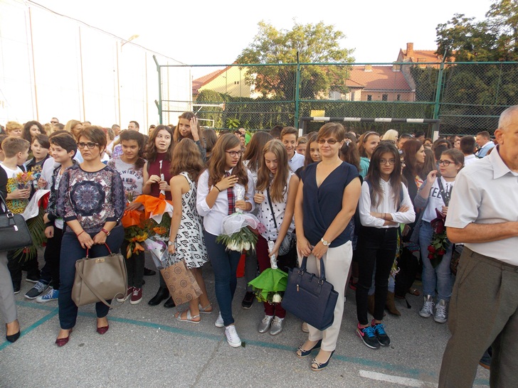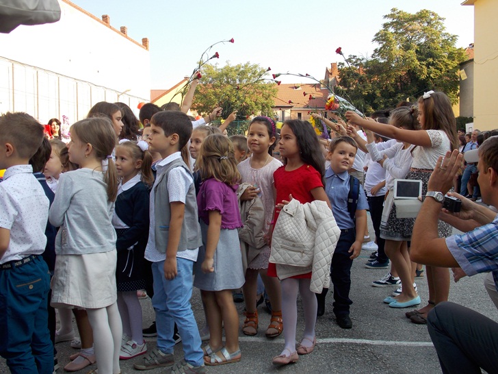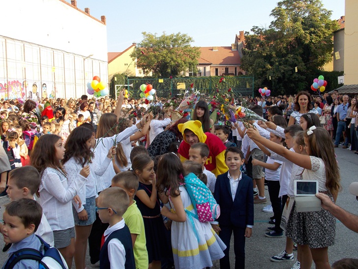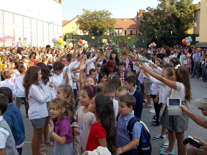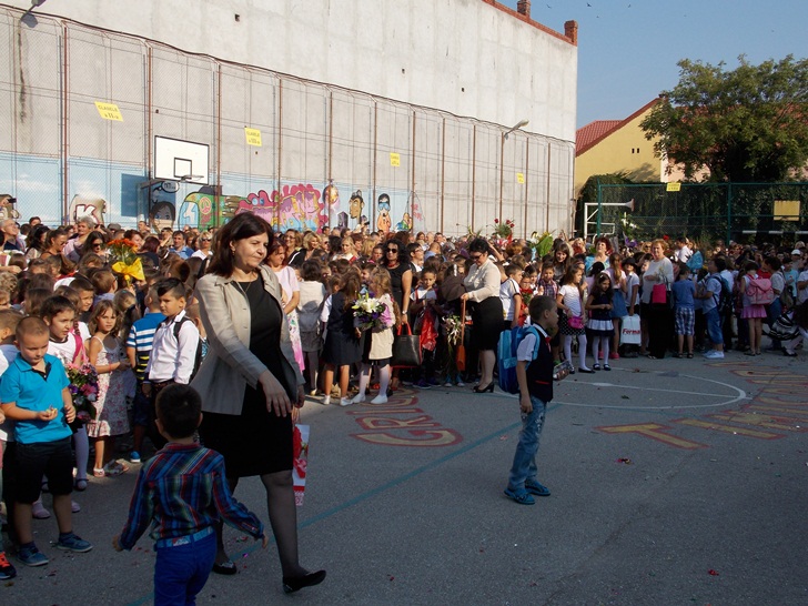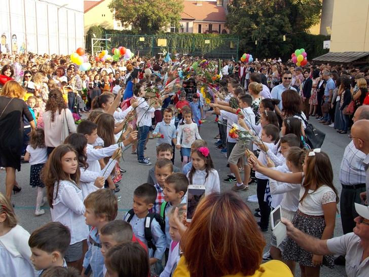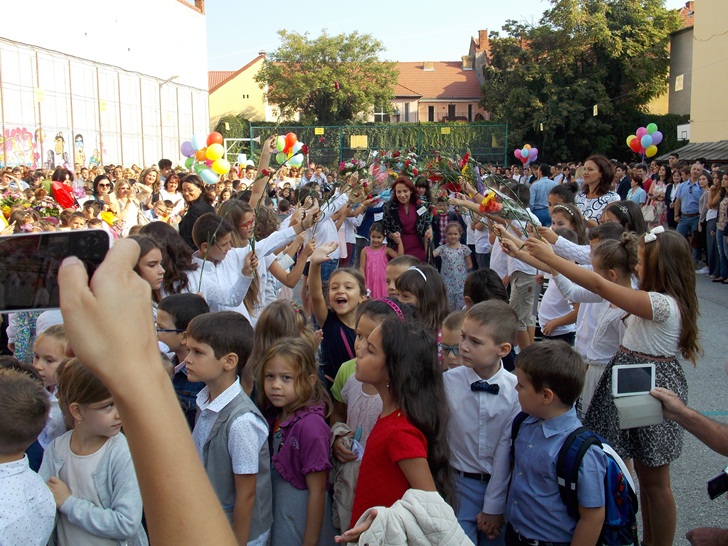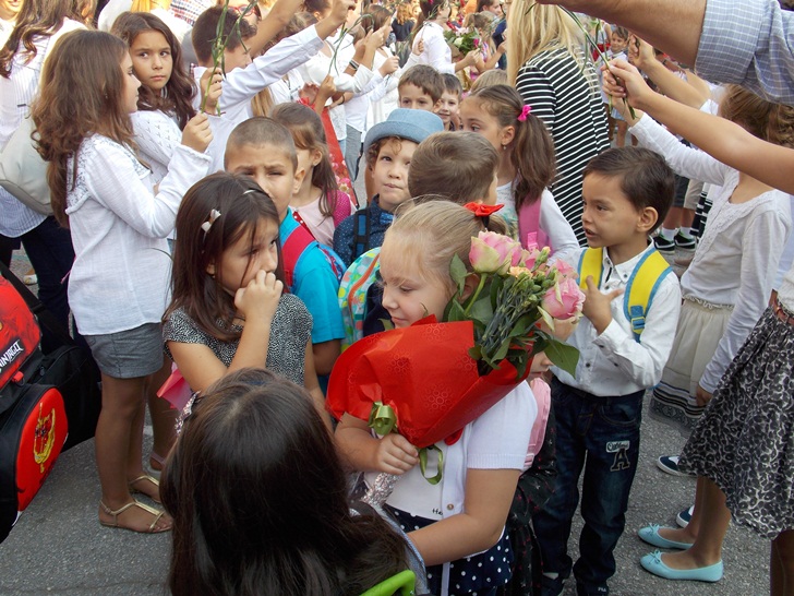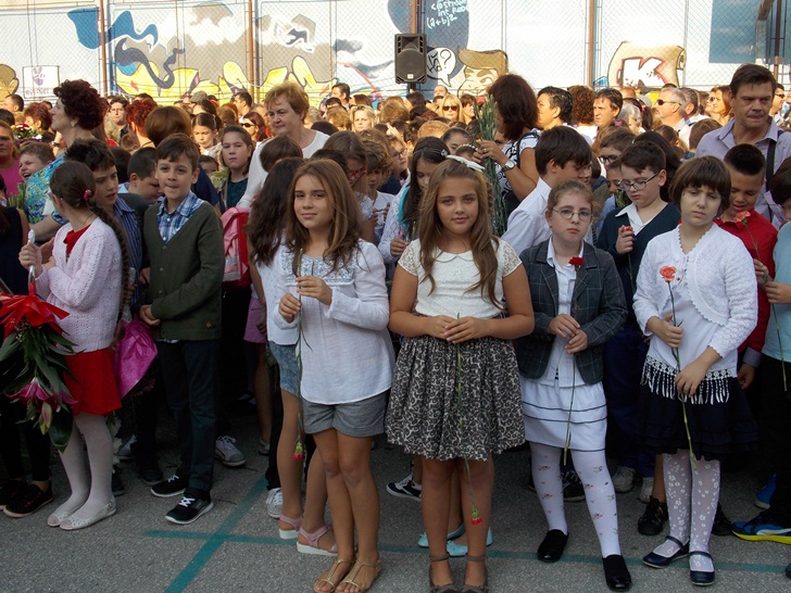 TIMISOARA. Emotii si flori multe in prima zi de scoala la Liceul Grigore Moisil din Timisoara. Curtea scolii s-a umplut de ghiozdane colorate, baloane, flori si chiote.
